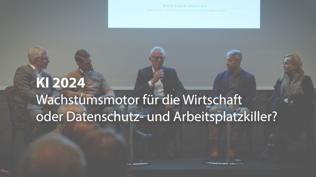 KI 2024 – Wachstumsmotor für die Wirtschaft oder Datenschutz- und Arbeitsplatzkiller? So lautete der Titel der Podiumsdiskussion, zu der Rhein Asset Management in den Düsseldorfer Industrieclub einlud.